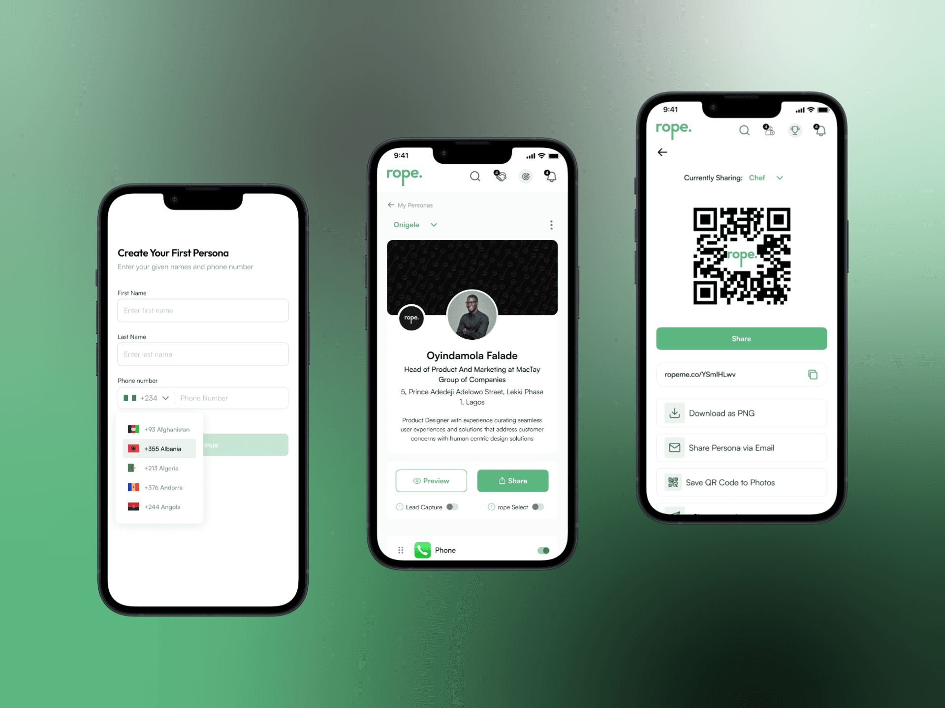 Rope is a digital networking solution that modernizes how individuals and businesses exchange and manage contact information. The product evolved in two phases: